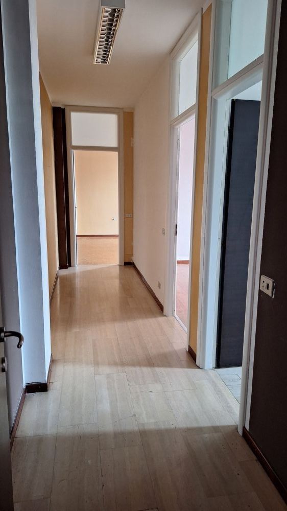 Ingresso in disimpegno, ampio locale ad uso reception con balcone, piccolo studio, due spaziosi uffici, bagno